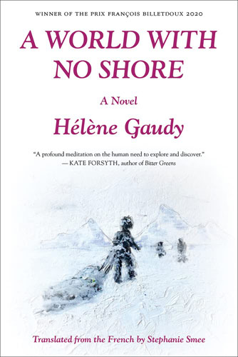 A World with No Shore by Prix Goncourt finalist Hélène Gaudy (translated by Stephanie Smee) begins in the summer of 1930, in Svalbard, Norway. A walrus-hunting boat sets sail for White Island, one of the last lands before the North Pole. The melting ice has revealed bodies and the remains of a makeshift camp. It is the solution to the mystery of the disappearance in July 1897 of Salomon August Andrée, Knut Frænkel, and Nils Strindberg as they tried to reach the North Pole in a hydrogen balloon. Among the remains, some rolls of negatives are found and one hundred images are retrieved. Based on these lunar-like black-and-white photographs and the expedition logbooks, Hélène Gaudy retraces and reimagines this great adventure that was blown off course, weaving in the painfully beautiful love affair of Nils and Anna.